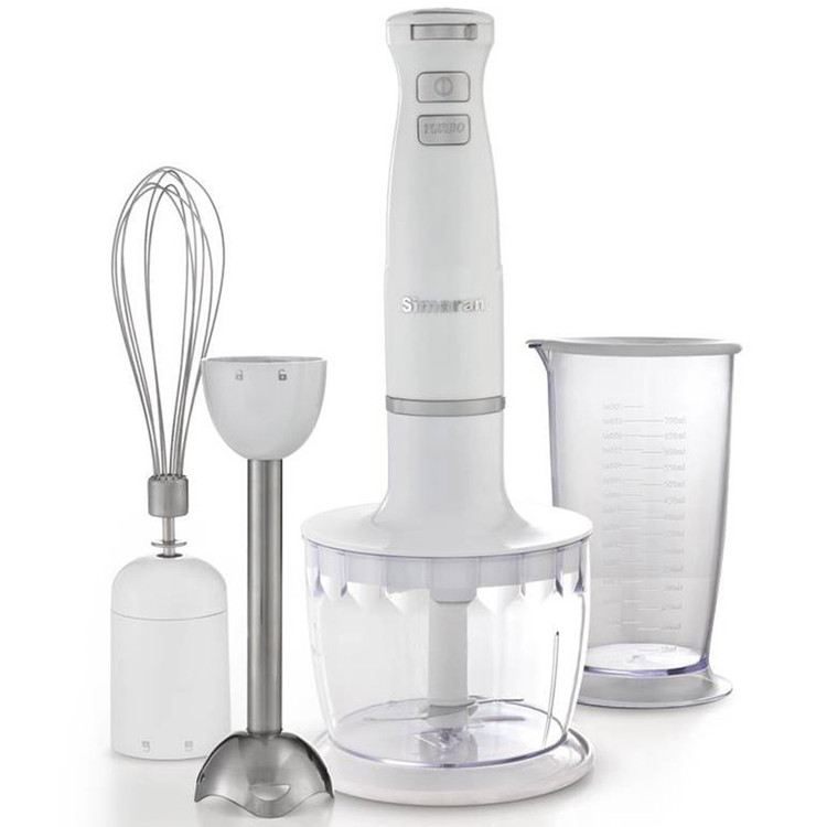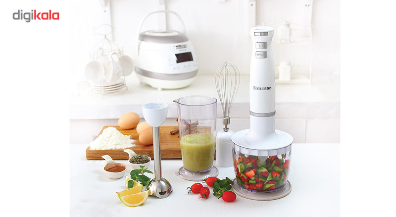 همزن میله ای و گوشت کوب برقی سیماران مدل SHB-1946 یک محصول چند کاره و کاربردی با ظاهری شیک و بسیار زیباست. بدنه دستگاه با طراحی ارگونومیک و از جنس پلاستیک و بسیار شیک ساخته شده که کار با آن را برای شما راحت و آسان می نماید.همزن برقی سیماران مجهز به میله گوشت کوب از جنس استیل ضد زنگ می باشد که می توان توسط آن انواع مواد غذایی گرم و سرد را مخلوط کرد. تیغه های تیز خردکن از جنس استیل ضدزنگ بهترین نتیجه را برای شما فراهم می کند و به راحتی نیز قابل جداسازی و شستشو هستند. از همزن بادکنکی نیز می توان برای هم زدن خامه، تخم مرغ و ... استفاده نمود. محفظه خردکن دارای کفه ضد لغزش می باشد و از سر خوردن و لرزش آن هنگام کار جلوگیری می کند.