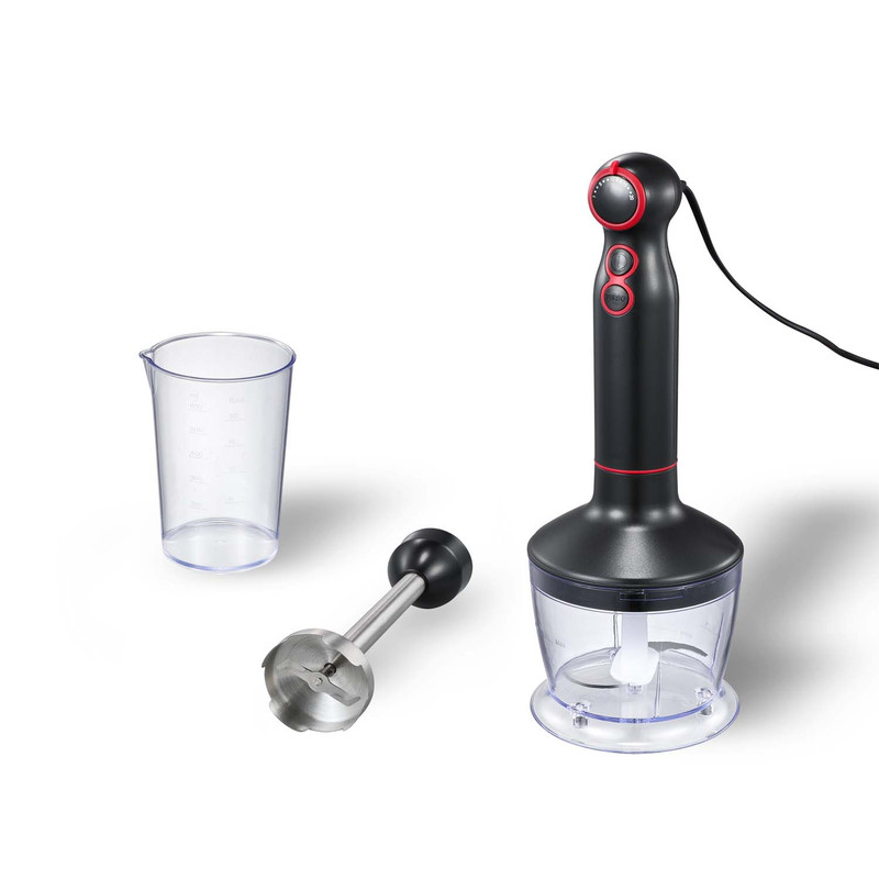 ظرف خرد کن همراه این دستگاه، دارای دو پره خرد کن استیل است که می تواند شما را از رنده های دستی بی نیاز کند، یک همزن همراه این مجموعه وجود دارد که در آشپزی بسیار کاربردی خواهد بود. تیغه ها و قلم گوشت کوب این دستگاه از جنس استیل ضد زنگ می باشد. موتور قدرتمند کم صدا و لرزش پایین و دسته ارگونومیک برای قرار گیری راحت در دست از دیگر ویژگی های این محصول می باشد.